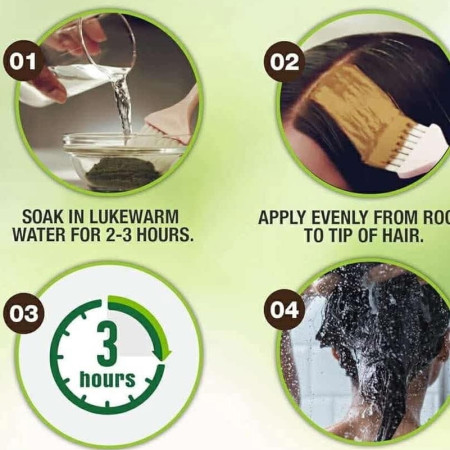 * চুলে ২/৩ ঘন্টা মেহেদী রাখবেন রঙ হওয়ার জন্য। যদি চুলে রঙ না চান তাহলে ১ ঘন্টা রাখতে পারেন সাথে henna paste এ তেল ব্যবহার করবেন।